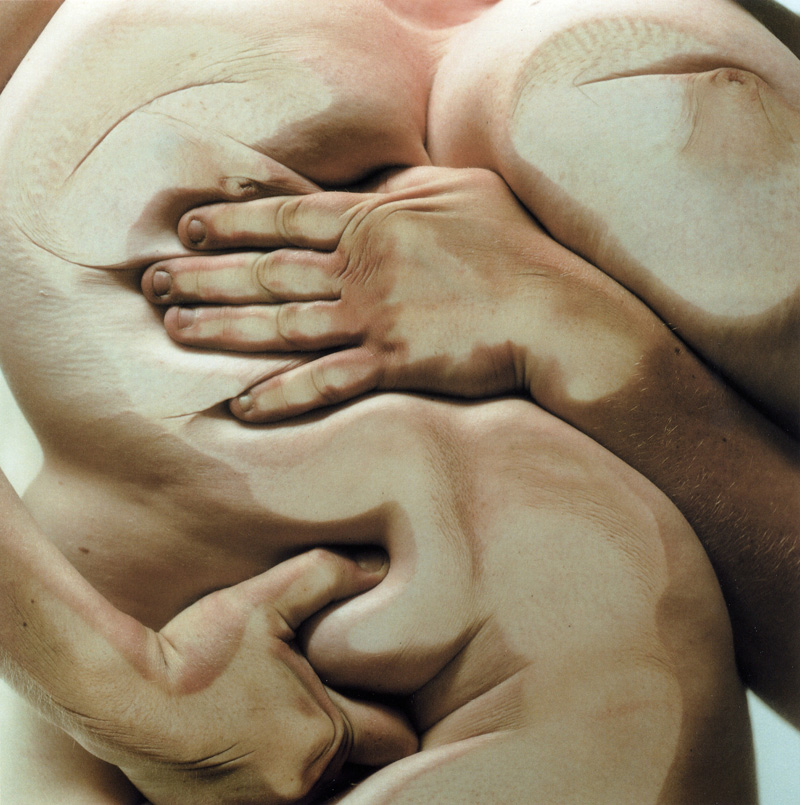 It's hard to know where to begin in my feelings when I look at this because it all hits me at once. There is an element of love, the hands pressing into the folds of flesh, embracing the rounds and hallows, the intimacy of the hand on the breast, to be so comfortable with yourself that you can hold yourself... and an element of hatred, the lower hand gripping a roll, the flesh smashed in such a way against the glass that you can't quite tell what you're looking at, the aggressive angle of the nipple (such a delicate and sensitive part of the body), that implies a reckless disregard or even loathing of ones own body. The vulnerability of naked flesh, exposed and yet partially covered by embarressed hands, or hands that may actually be framing it... inviting you to look. The challenge of "Mine", holding onto itself, fighting against your judgement... and yet the exposure, inviting you to look, make your own assessment. And then with the lighting, it's warm, pink, soft. Real. But it's almost like looking at a specimen in a jar, one part of a whole you'll never see or understand. It's almost gruesome in its vulnerability... And yet strangely beautiful.